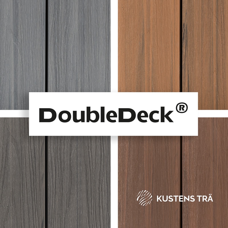DoubleDeck® är en premium komposittrall för dold infästning. Kärnan är kapslad med ett UV-resistent ytlager som behåller kulören, är enkel att rengöra och som skyddar kärnan mot fukt, mögel och fettfläckar.
