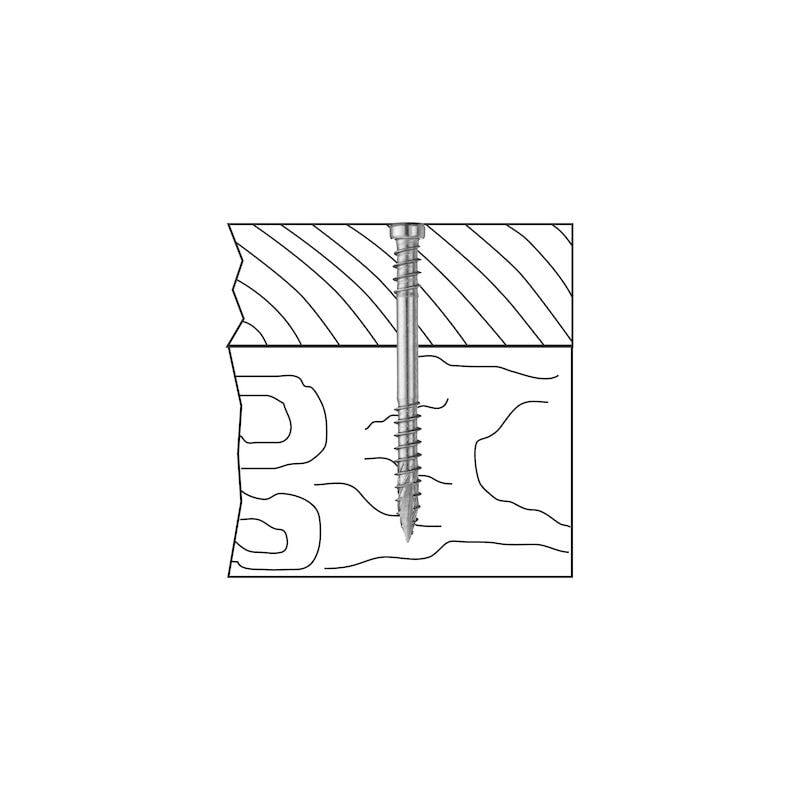 Lämplig vid montage av trallvirke och panel i hårdträ. Skruvens unika idragningsegenskaper har uppnåtts genom att förse skruven med en skärande borrspets, samt med snedställda och längsgående skär mellan gängorna som ger